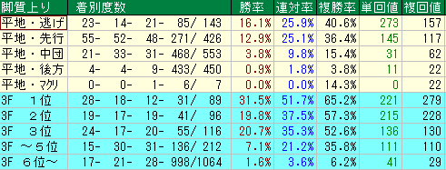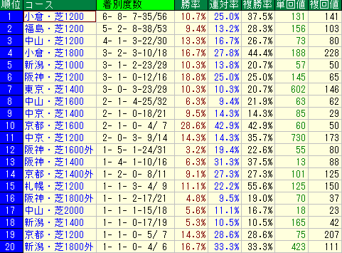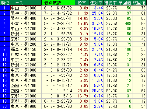 - 芝なら「短距離」!ダートなら「距離不問」! まずは得意なコースと距離を把握しましょう。