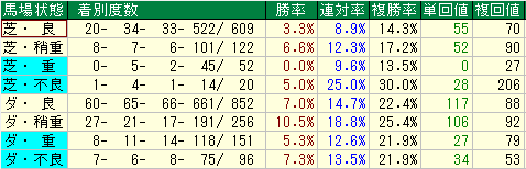 9. 1. 芝コース:良馬場よりも「稍重」と「不良馬場」でパフォーマンスアップ!