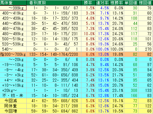 15. 1. 馬体重別パフォーマンス:460~499kgが黄金ゾーン!