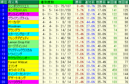 • 距離適性: 素晴らしいことに、ダートではどの距離でも勝利を挙げており、同じような数値を残しています。これは、産駒が短距離から中距離まで、幅広い距離でダートをこなせる汎用性の高さを示しています。