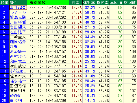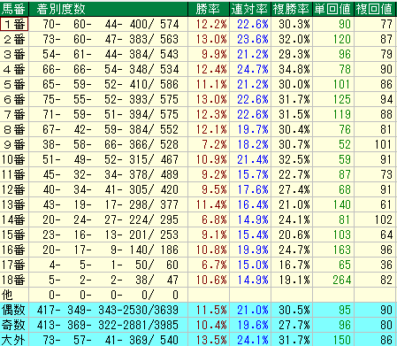 - 5番~10番、12番は平均を大きく上回る得意な枠です。