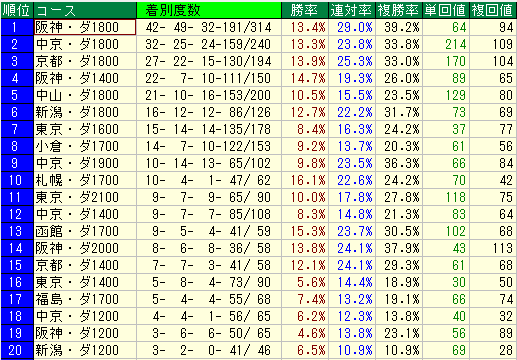 ■ 鉄則①:得意コースは「阪神」!芝よりダートがさらに熱い