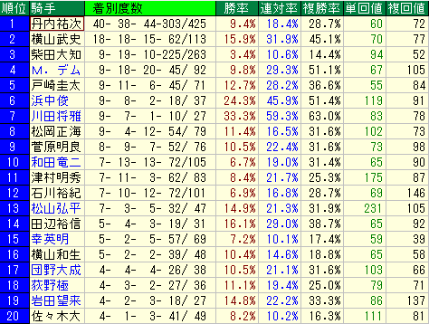 - 複勝率が大きく低下。さすがに年齢的な衰えが見え始める時期かもしれません。
