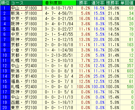 - ダートの短距離戦(1600m以下)は壊滅的に苦手。手を出さない方が賢明!