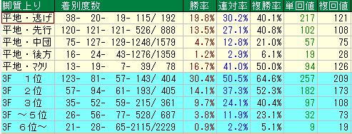 - 2.上がり3Fの得意度:最速の上がりより「上位の上がり」で粘り込むのが得意!