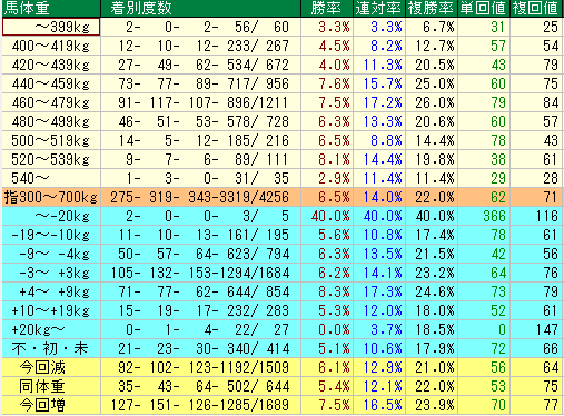 - 1.馬体重クラス別パフォーマンス:理想は「440kg~479kg」のボリュームゾーン!