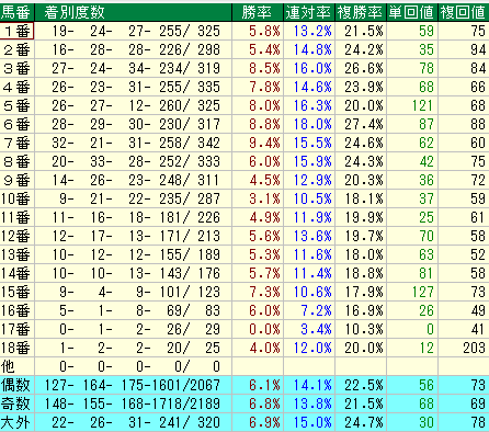 最後に、偶数番・奇数番、そして大外枠の適性をまとめて見ていきましょう。