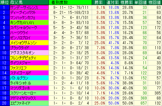 馬番平均複勝率種牡馬複勝率平均単勝回収値種牡馬単勝回収値平均複勝回収値種牡馬複勝回収値