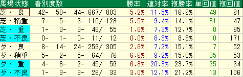 27. ① 良に比べて馬場状態が悪くなるにつれてどうなるか(全体傾向)