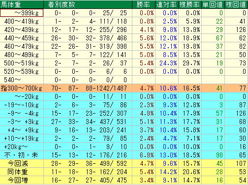 • 10~25週: 勝率4.6%、複勝率13.8%と、勝率はまずまずですが、複勝回収値58と低調です。やや長めの休み明けは、思ったほど力を出せないケースが多いようです。