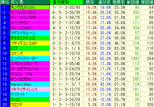 3. サンダースノー産駒の母父馬 ワースト5ランキング