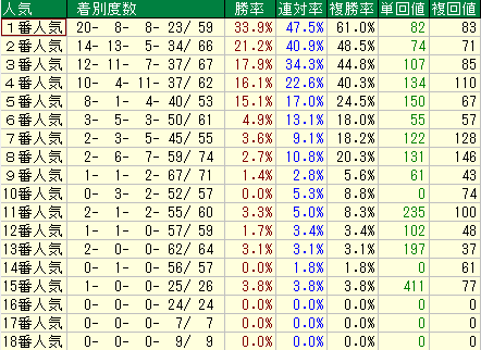 単勝回収値12395偶数番の方が高い。単勝回収値に妙味あり。