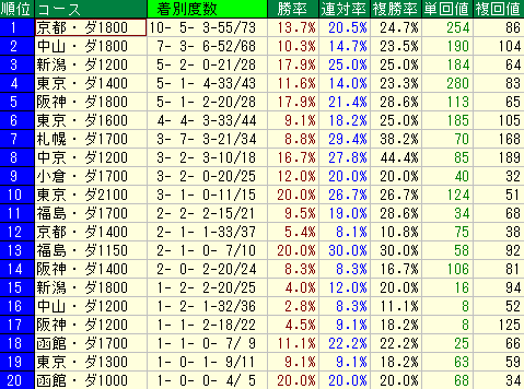 22. ① 場所別得意・苦手:京都・阪神のダート1800mは鉄板!?