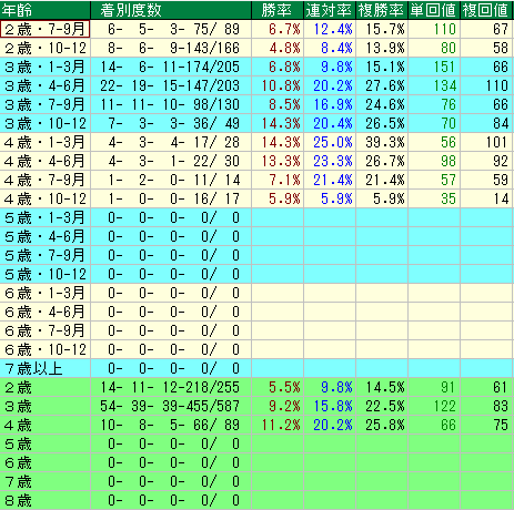 5. 4歳年末以降は厳しい: 4歳・10-12月以降はデータも少なく、成績も極端に低いため、期待値は低いでしょう。