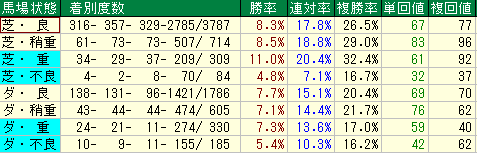外番になると、全体の好走率は平均よりも低くなる傾向が見られます。