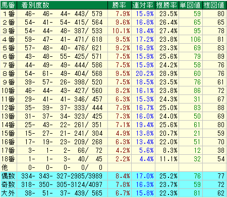 - **「偶数番」**は奇数番よりも有利な傾向にあり、馬券検討の際の強力な武器となります。