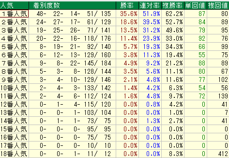 • 偶数番: 複勝率23.0%、単勝回収値62、複勝回収値78