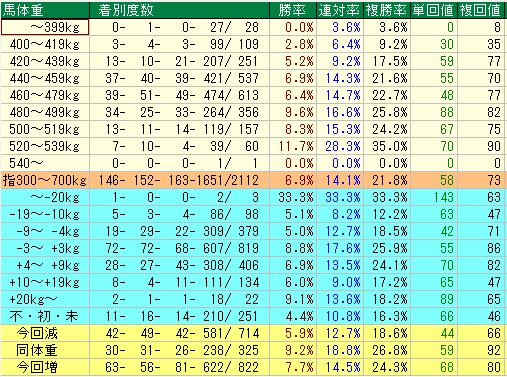 22. ディスクリートキャット産駒:馬体重別パフォーマンス分析
