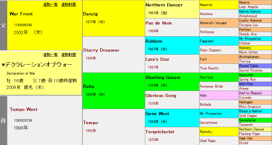 • コメント:G1で勝ち負けできる馬は一握りですが、デクラレーションオブウォーは複数のG1で連続して好走するという、非常に安定した強さを持っていました。