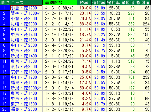 • 外番(13~18番): 16番ゲートが非常に得意。それ以外の外枠はやや苦手。