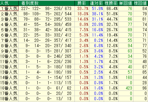 一般的に言われる「偶数番は後入れで有利」というセオリー通り、偶数番の馬はスムーズにレースを進めやすいのでしょう。しかし、その分人気になりやすく、配当が安くなる傾向にあるようです。一方で、奇数番はスタートでやや不利を受けるリスクがある分、人気が落ち、好走した際の配当が美味しくなっていると考えられます。