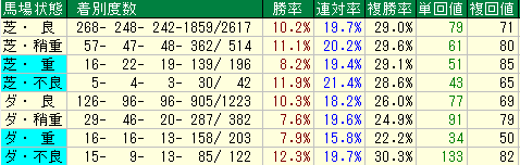 - 【芝コース編:道悪は勝ちきれないが、ヒモ穴として妙味アップ】