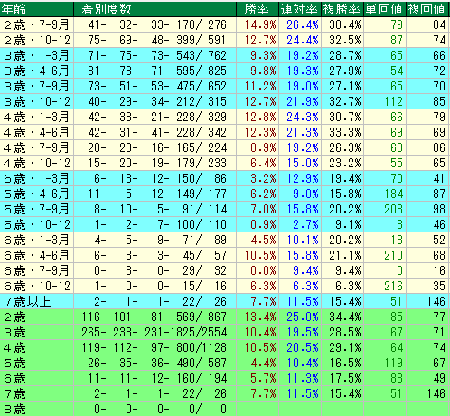 - 2歳・7-9月(単回79/複回84): 複勝率が異常に高く、軸としての信頼度は抜群。