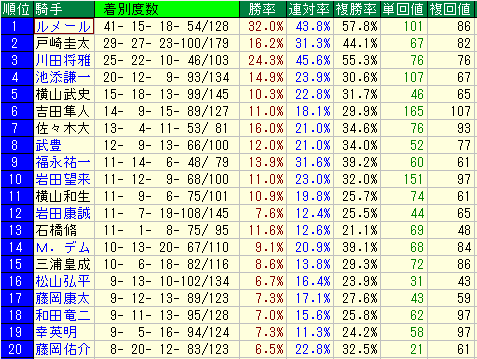内枠(1~4番):平均レベルか、やや得意。ただし3番枠は鬼門