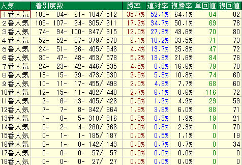 - 全体的に回収率は低く、馬券的な妙味は薄い傾向にあります。
