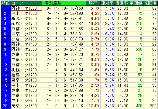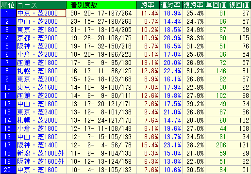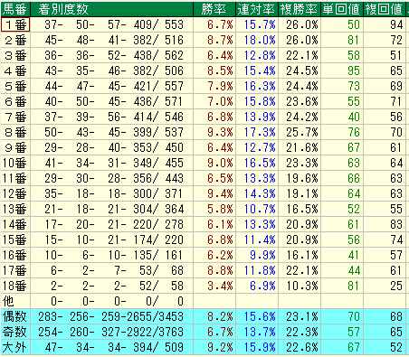 - 13番、16番、18番は平均を下回る苦手な枠です。