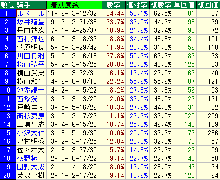 - 複勝率は低いが単勝回収率と複勝回収率が高い騎手 ベスト3
