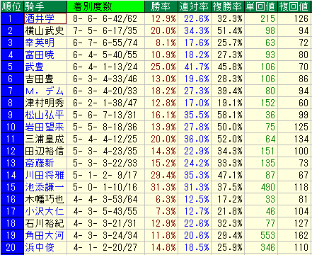 - 複勝率は低いが回収率が高い!一発を秘めた穴馬メーカー騎手ベスト3!