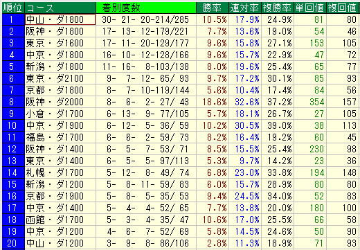 - 勝ち数: ダート中距離が圧倒的にトップ。
