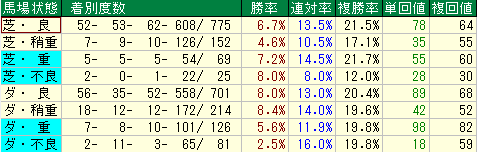 結論:内枠はやや苦手。特に3番、4番は避けるべき。1番、2番は平均的な走りが期待できる。