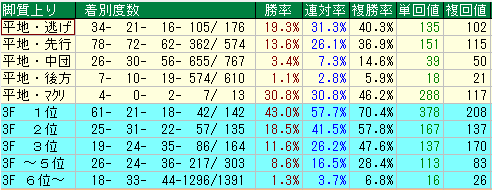 - 明け4戦: 複勝率25.4%、単勝回収値40、複勝回収値67