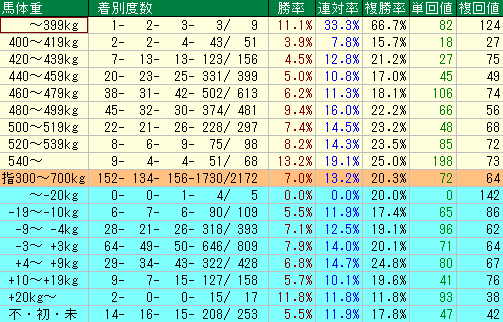 - 連闘: 複勝率12.5%、単勝回収値5、複勝回収値24