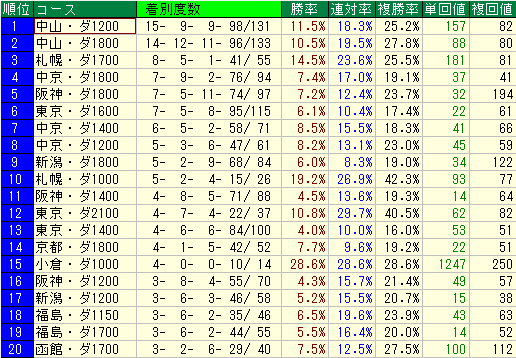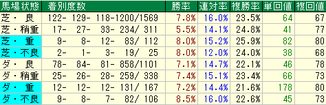 - 複勝率は平均並みですが、回収値は低いです。叩き2戦目だからといって過信は禁物でしょう。