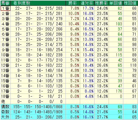 まずは、個別の馬番データから見ていきましょう。
