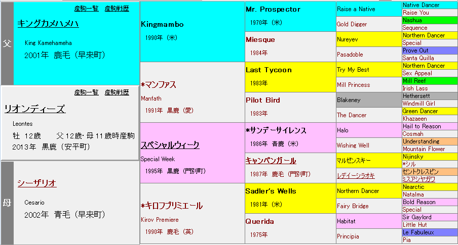 - 母: シーザリオ(日米オークス馬)