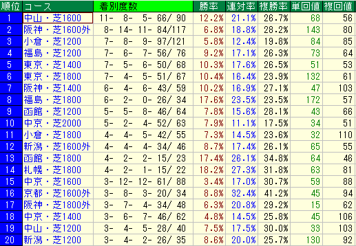 - 全体的には偶数番で好走する傾向が強い。