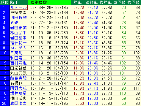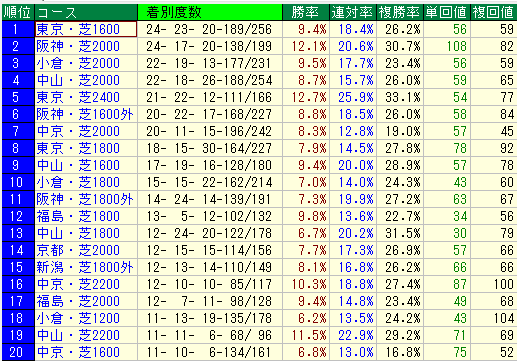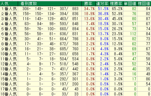 - 全体的に回収率は平均レベル。妙味は薄いですが、安定感はあります。