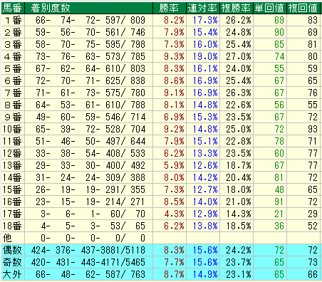 結論から言えば、この産駒に関しては、偶数番と奇数番の有利不利は「ほとんどない」と言えます。