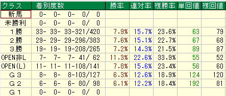• 単勝回収値71、複勝回収値76と、回収率も比較的良好(100を下回るためプラス回収ではないが、他よりマシ)。