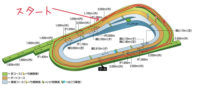 - 芝3200mコースに比べ最初の上り勾配が緩やか(2m差)