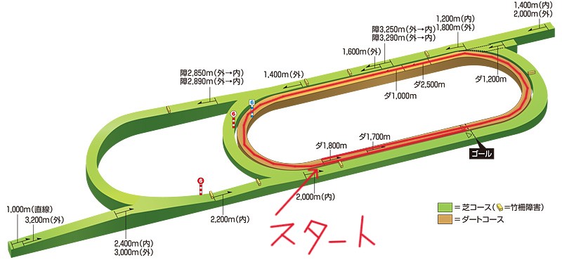 • スタート位置:スタンド前直線の4コーナー寄り。