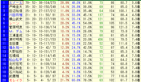 • 単勝回収値137(全騎手中最高) / 複勝回収値74