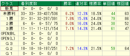 • 1勝クラスでは他クラスより荒れる傾向にある。