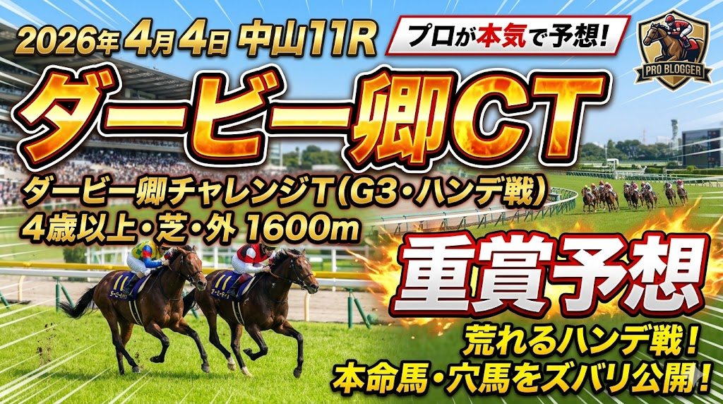 2026年 4月 4日 中山11 ダービー卿チャレンジT4歳以上・G3(ハンデ) 芝・外 1600m 重賞予想