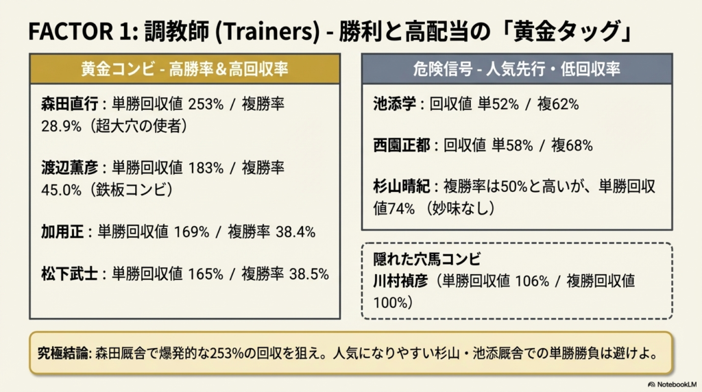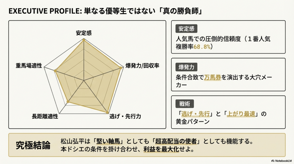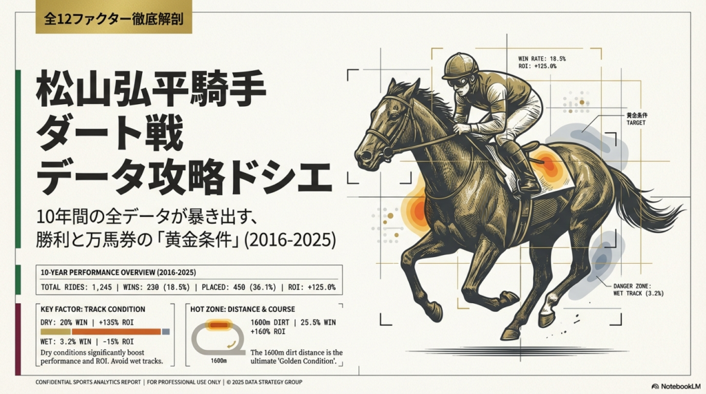 【馬券攻略】松山弘平×ダートは儲かる?驚異の回収率と狙い目コースを10年データで丸裸に!! 騎手特徴 2026.03.24 より詳しくはここから 松山弘平騎手特徴 ダート編松山弘平騎手データ ダート編(2016年~2025年)調教師1. 松山弘平騎手×調教師:総合評価ベスト5はこれだ!勝利と高配当を掴む「黄金タッグ」を見極めろ!UMA探偵・Kが独自に算出した、複勝率、単勝回収率、複勝回収率を総合的に評価したラ...