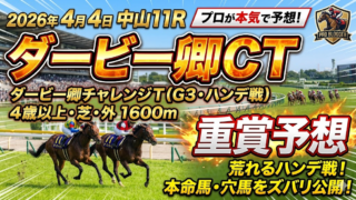 重賞予想 2026年 4月 4日 中山11 ダービー卿チャレンジT4歳以上・G3(ハンデ) 芝・外 1600m 重賞予想